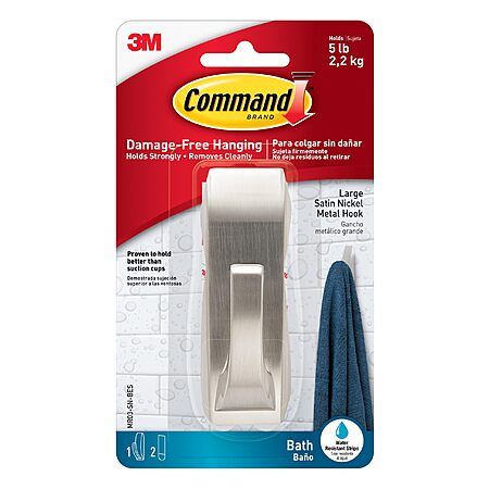 3M Command Modern Reflections Large Metal Bath Hook (Satin Nickel)