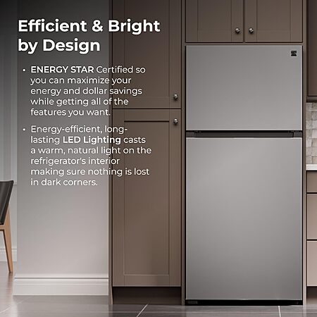 Kenmore 30 in. 18.1 cu. ft. Capacity Refrigerator/Freezer with Adjustable Glass Shelving, Humidity Control Crispers, Ice Maker, ENERGY STAR Certified, Fingerprint Resistant $649