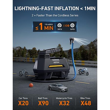 Model: AstroAI Tire Inflator Portable Air Compressor Tire Air Pump for Car Tires - Car Accessories, 12V DC Auto Pump with Digital Pressure Gauge, Emergency LED Light for Bicycle, Balloons, Yellow