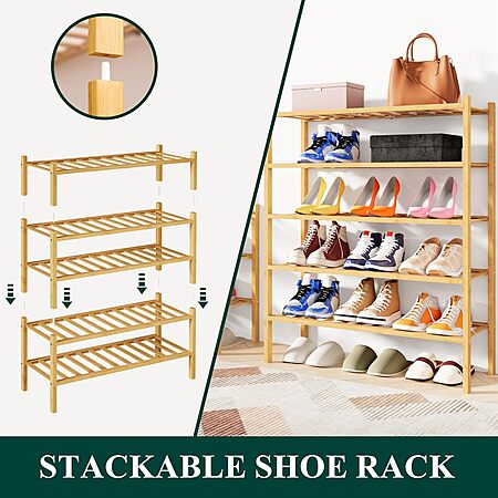 Prime Members: 3-Tier Smiry 27" Bamboo Stackable Shoe Rack Organizer (Regular) $10.79, (Thick) $13.19 + Free Shipping