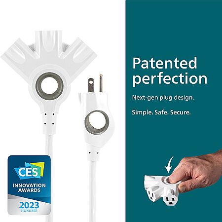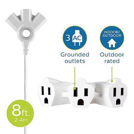 $9.50: Philips EZGrip Outdoor Extension Cord, Multiple Outlets, Grounded 3 Prong, 8 Ft, 16 AWG, White, SPC3183EZT1/37