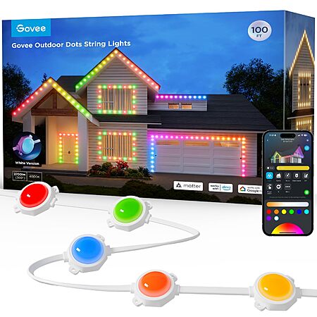 Model: Govee Outdoor Dots String Lights, Connected 2 Ropes of 50ft(100ft) Christmas Lights Outdoor, 90 Smart RGBIC LED Lights, 65 Scene Modes, IP65 Waterproof for Christmas Decor, Works with Alexa, Matter