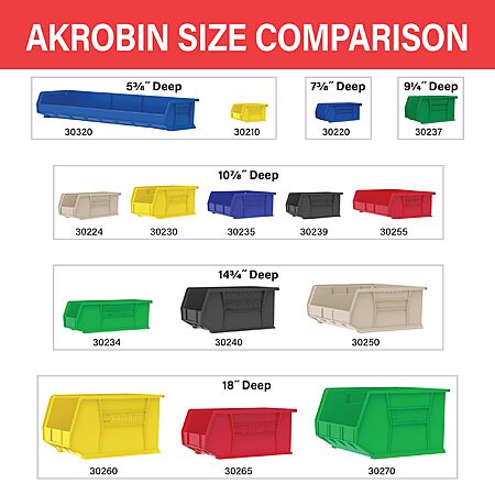 Amazon[amazon.com] has 12-Pack Akro-Mils 30224 AkroBins Plastic Storage Bins, Space-Saving Stackable Bins for Garage, Pantry, Craft Organization (11" L x 4" W x 4" H, Red) on sale for $38.73. Shipping is free.