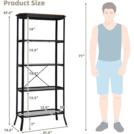 67.5''H Tangkula 5-Tier Steel Frame Bookshelf Shelving Unit $45 + Free Shipping
