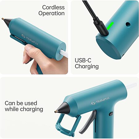 Tilswall Cordless Hot Glue Gun with 2000mAh Built-in Battery + 20 Glue Sticks (Various Colors) for $19.99 - $7 off (apply code