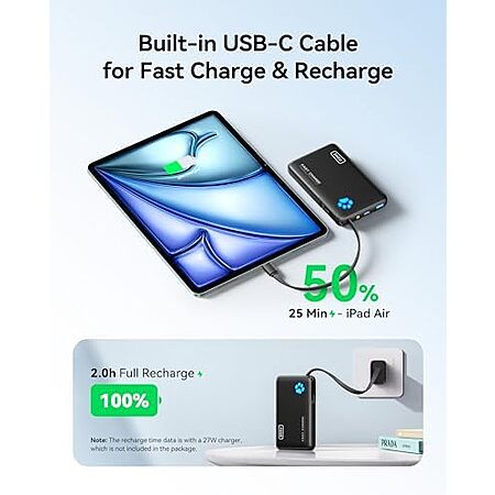 [AC] $12.74* | INIU 45W 10000mAh Slimmest Power Bank w/ Built-in USB-C Cable at Amazon