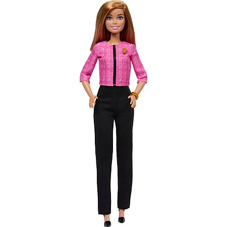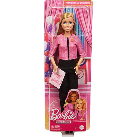 - With Barbie Future Leader doll, kids can explore all kinds of leadership roles, all the way to the top! From campaign tales to election events to decision-making moments, Barbie doll is ready to inspire stories around leadership. She wears a polished pink and black outfit accessorized with two golden bracelets and 'B' pin. A kid-sized 'Future Leader' sticker lets kids role-play the campaign trail with Barbie. Imaginations can play out a world full of storytelling possibilities and career opportunities with this powerful doll, ready to inspire kids to be anything! Doll cannot stand alone. Colors and decorations may vary.