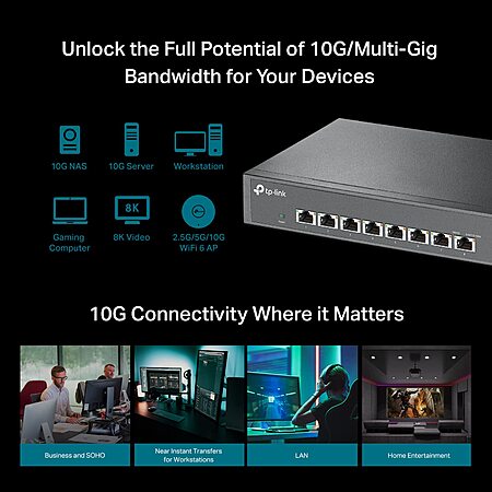 TP-Link TL-SX1008 | 8 Port 10G/Multi-Gig Unmanaged Ethernet Switch | Desktop/Rackmount | Plug & Play | Sturdy Metal Casing | Speed Auto-Negotiation, Free Expert Help $299.99