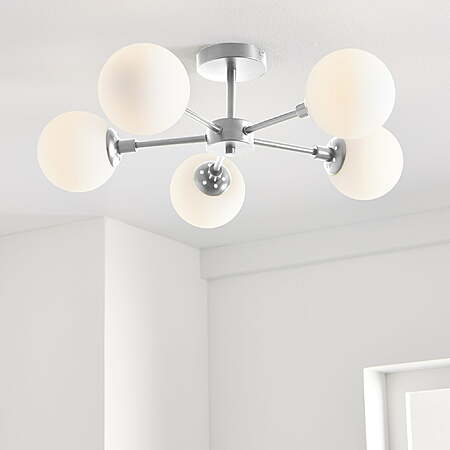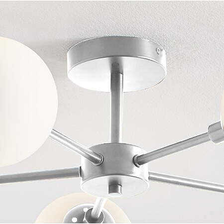 Description:- Elegant Design: Better Homes & Gardens Five Globe Flush Mount Ceiling Light with a classic design and satin nickel finish.