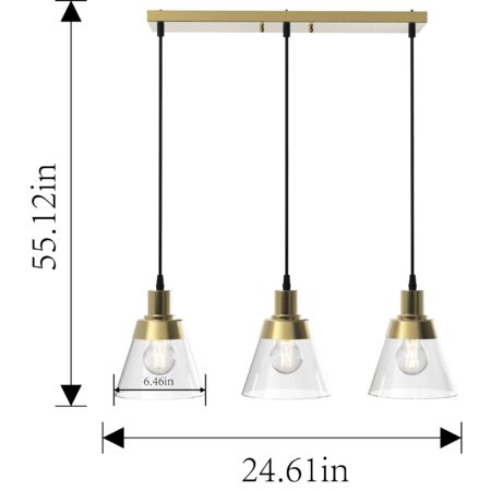 The Better Homes & Gardens fixture is a pendent with three clear glass shades, 3 bulbs included. This Metal Light Fixture features a burnished brass finish. It’s hardwired and ceiling mount. The Better Homes & Gardens Pendent Light has a wide range of applications and is suitable in your dining room, bar, kitchen and more. This fixture is equipped with three dimmable 40W equivalence A19 filament light bulbs. This decorative bulb is rated to last 13 years based on 3 hours per day use. This light bulb uses only 5 Watt of energy to produce light equal to light from a 40W incandescent light bulb. That is a 90% savings over traditional lighting - and that means savings on your energy bill every month. Better Homes & Gardens 3-Lights clear glass Pendent Light, 3 Bulbs Included Burnished Brass Finish Classic design with three clear glass shades and includes three 40W Equivalent A19 filament bulbs 5 years limited lifetime warranty for defects in material and workmanship Size: 24.61x6.46x55.12IN Hardwired and ceiling mount Includes 3 Dimmable A19 5W filament Light bulbs E26 base Light output: 450 Lumens x 3 Color temperature: Soft white 2700K