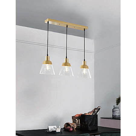 Model: Better Homes & Gardens 25" Architectural 3-Light Island Pendant Light, Gold Finish Clear Glass Shades