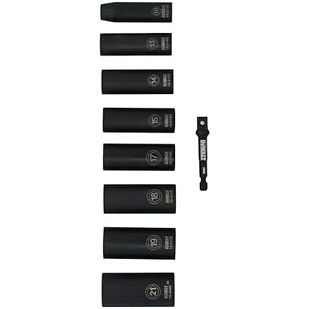 I don't turn sockets professionally so I'm somewhat ignorant here, but it seems like aside better markings on the DeWalt and an extra socket size, this eight piece set for $18 at HF is a much better deal. Curious about other opinions.
