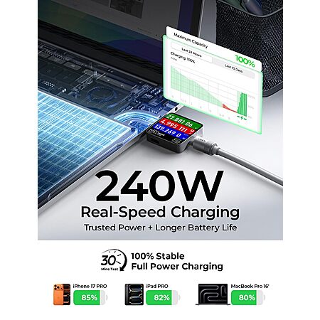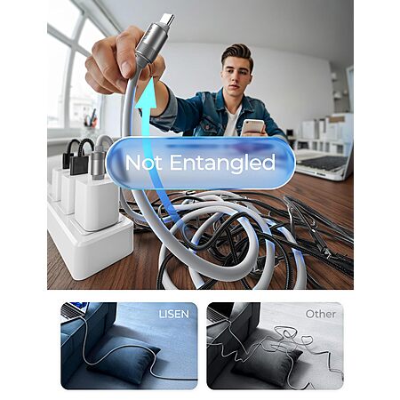 Prime Members: 10' LISEN 240W Silicone USB-C to USB-C Fast Charging Cable (Grey) $6.49 + Free Shipping