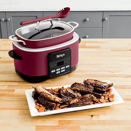 $98.00: Ninja Foodi Possible Cooker, 8.5 Quart, 6-in-1 Multi-Cooker, Slow Cooker, Steamer, Glass Lid, Integrated Utensil, Nonstick, Oven Safe to 500°F, Cherry Tarte, MC1000WM