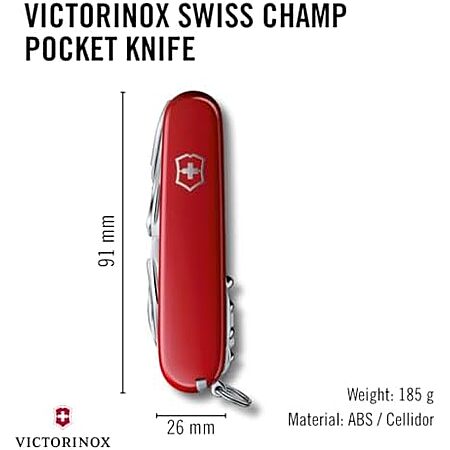 Model: Victorinox Swiss Champ Swiss Army Knife, 33 Functions, Swiss Made Pocket Knife with Large Blade, Screwdriver, Chisel and Combination Pliers - Red