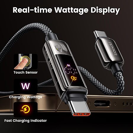 Amazon.com: toocki USB C to USB C Cable 6.6FT 100W PD Fast Charging with E-Marker Chip Nylon Braided Reinforced Connectors LED Touch Display for iPhone 17 Series MacBook Pro Air iPad Pro Galaxy S24 Pixel : Electronics