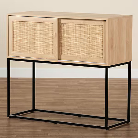 Baxton Studio Amelia Mid-Century Modern Transitional Finished Wood & Natural Rattan Sideboard Buffet (Natural Brown) $62.09 + Free Shipping