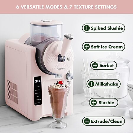 GreenPan Frost Ice Cream Maker & Slushie Machine, Soft Serve, Sorbet, Margaritas, Milkshakes, Frozen Yogurt, 6 Modes, 7 Textures, Self-Cleaning, Family Size, Pink $219.99