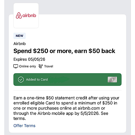 Not quite as hot @30 vs 50 since I already get at least 5% back buying gift cards & usually more. Still I use Airbnb a lot so it is still a good deal.