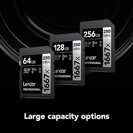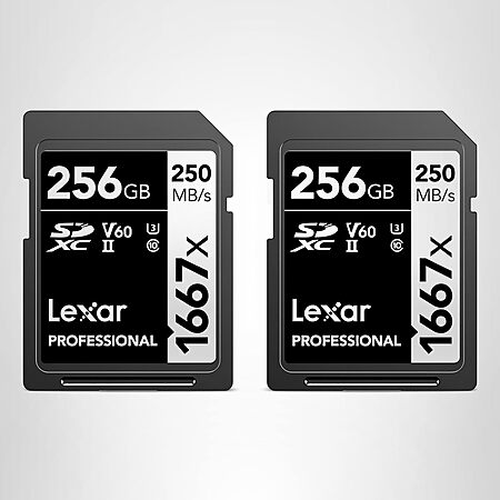 Lexar 256GB (2-Pack) Professional 1667x SD Card, UHS-II, C10, U3, V60, Full HD, 4K, Up To 250MB/s Read SDXC Memory Card, for Professional Photographer (LSD1667256G-B2NNU) $119.99