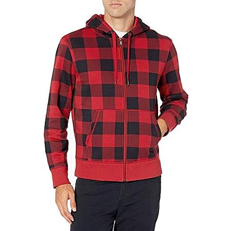 Model: Amazon Essentials Men's Full-Zip Fleece Hoodie (Available in Big & Tall), Black Red Buffalo Plaid, X-Small