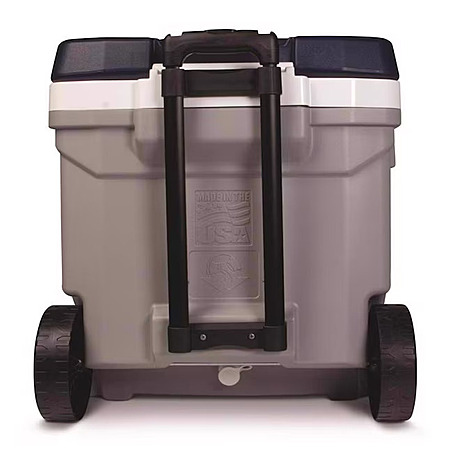 I found this Maxcold Latitude 62 quart hard cooler ice chest cart with a telescoping handle at my Costco warehouse for an extra 30% off with a final price of $49.95.