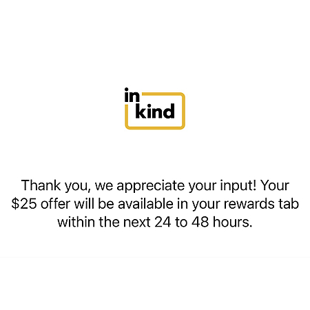 Must complete survey by 2/13/26 and must use offer by 3/8/26. Bill must be larger than $25 before taxes and tip to apply offer. Offer will arrive in Rewards tab in the inKind app 48 hours after survey completion.