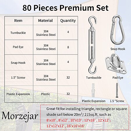 Morzejar 80-Piece 304 Stainless Steel Canopy Installation Hardware Set $9.34 + Free Shipping w/ Prime or on $35+
