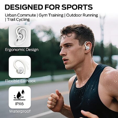 Monster N-Lite 216 Sports Earbuds | Secure Earhook Design | ENC Noise Cancellation & IPX6 Waterproof | 48H Playtime | Stereo Bass | LED Power Display (White) $21.99