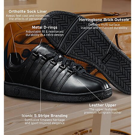 K-Swiss Men's Classic VN Leather Sneaker, Regular or X-Wide. Sizes up to 16, multiple colors $59.97