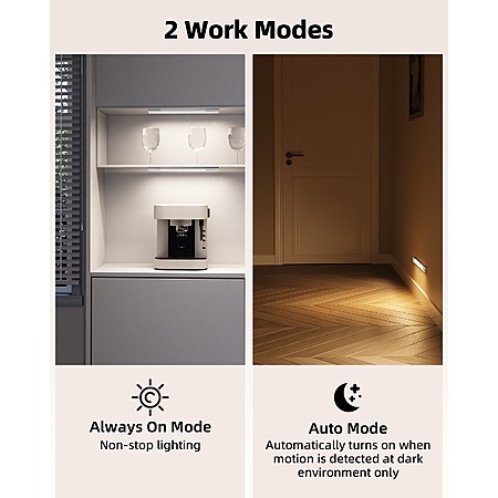 About:- Smart Motion Sensor & 2 Modes: In Auto Mode, the light detects motion within a 10 ft range and a 120° field of view. It automatically turns on and then switches off after 20 seconds without movement.