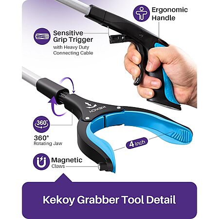 36" Kekoy Anti-Slip 360° Rotating Foldable Grabber Reacher Tool w/ Magnetic Tip $8.79 + Free Shipping w/ Prime or on $35+