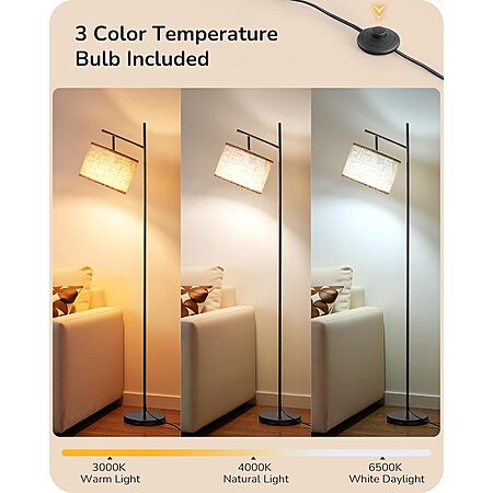 $27.98* | EDISHINE 64.7" Minimalist Standing Lamp w/ 3 Color Temp Bulb & Linen Shade at Amazon