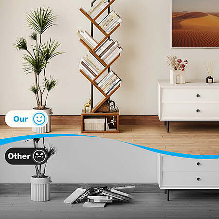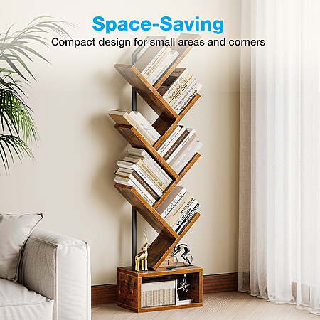 | Product Description: | This modern bookshelf features a sleek tree-branch design that blends with various home decor styles. Its multi-tier structure provides ample storage for books, magazines, CDs, decorations, and more. With its compact yet spacious design, it maximizes vertical space, making it ideal for small rooms, offices, and corners. Crafted from durable materials with reinforced panels, this bookcase ensures stability and long-term use. The waterproof surface allows for easy cleaning, and assembly is simple with included instructions and tools. Whether for organizing or displaying, this bookshelf adds both function and style to any space. Space-Saving & Stylish Design This uniquely designed bookshelf maximizes vertical space while adding a modern touch to your home decor. Its compact structure fits perfectly in small rooms, offices, and corners, making organization effortless. Sturdy & Multi-Tier Storage Crafted from durable materials with reinforced board, this bookshelf offers strong support and multiple open shelves for books, magazines, video games, and decorations, keeping your space neat and organized. Easy Assembly & Maintenance The bookshelf comes with clear instructions, numbered parts, and all necessary tools for a quick setup. Its waterproof surface ensures easy cleaning, providing long-lasting functionality. |