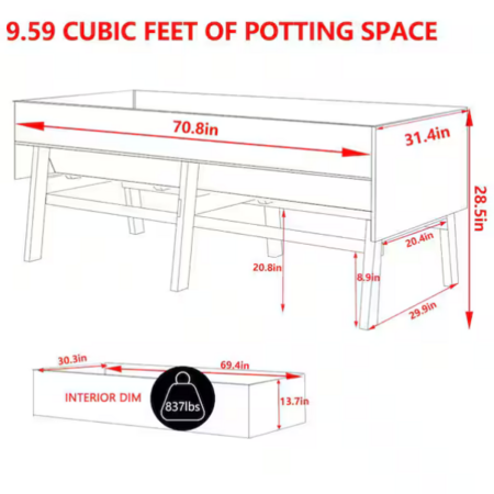 VEIKOUS 71 in. L x 31 in. W Large Cedar Wood Raised Garden Bed Outdoor with Legs and Liner, Carbonized $136