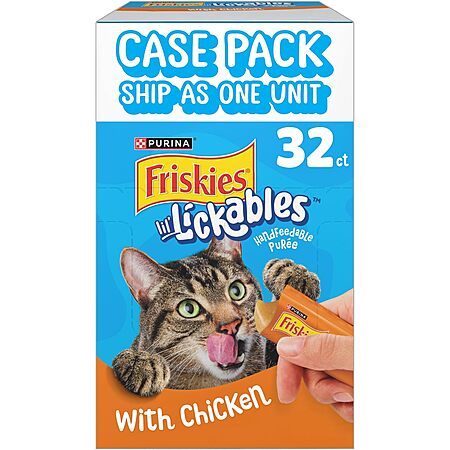 Amazon has 32-Pack 0.5-Oz Purina Friskies Lil' Lickables Cat Treats w/ Chicken for $16.99 - 30% when you clip the coupon on the product page - 5% when you check out via Subscribe & Save = $11.04. Shipping is free with Prime or on $35+ orders.