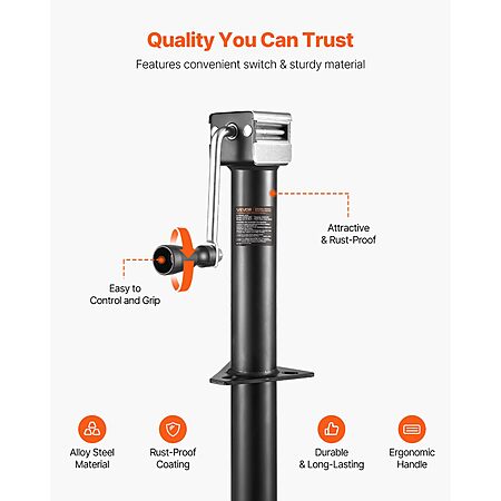- Designed for Stability & Durability: This trailer jack is engineered to deliver exceptional stability and long-lasting performance. Crafted from heavy-duty carbon steel, it offers maximum strength and rigidity. The galvanized inner and outer tubes and powder finish provide enhanced corrosion resistance.