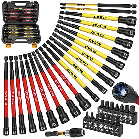 Magnetic Nut Driver Bit Set, 35-Piece Extra Long Nut Driver Set for Impact Drill, Metric & SAE, PH1 & PH2 Screwdriver Bits 1/4 Drive Shank Adapter Extension, $19.98, FS Prime