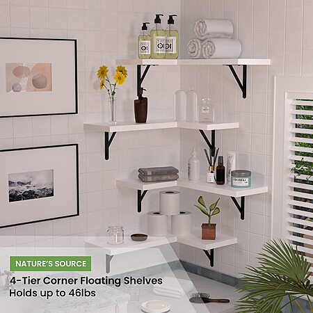 NATURE'S SOURCE via Amazon [amazon.com] has 4-Count NATURE'S SOURCE Corner Floating Shelves Set (White) on sale for $35.99 - 50% off when you enter the coupon code S9E4RDLQ = $17.99. Shipping is free w/ Prime or on $35+.