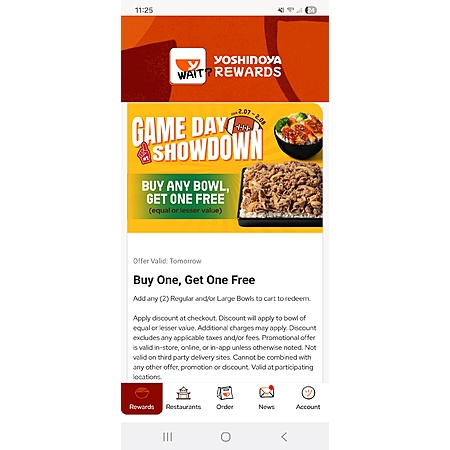 Yoshinoya has an offer on their app for buy any bowl, get one FREE!