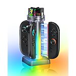 - 【Stunning RGB JoyCon Charging Station】Enjoy 5 vibrant color modes that shine through the transparent tower, turning this JoyCon charging station into a visual centerpiece of your setup.