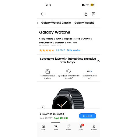 EPP Samsung Watch 8 40mm 160, 44mm 190. No Tradein Required $160