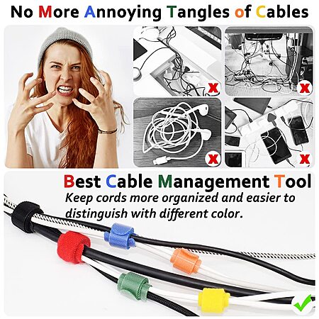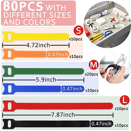 80-Piece Nayzwok Reusable Multicolor Cable/Wire Ties (4",6",8" w/ 6 Colors) on sale for $9.99 - $5 (50%) off off when you apply promo code