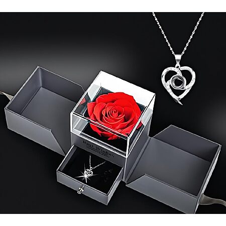 Eternal Red Preserved Roses in a Box for Valentine's Day - Featuring a heart necklace engraved. Made from real eternal red roses - $7.73