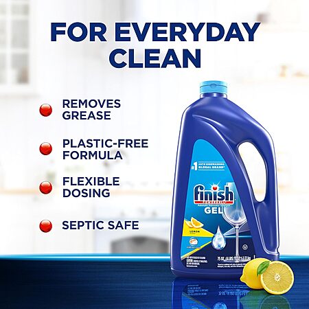 Finish Gel Liquid Dishwasher Detergent, Advanced Deep Cleaning Power Dish Soap, Dishwasher Soap, Plastic-Free, Septic Safe Dish Detergent, Lemon Scent, 75oz - $3.42