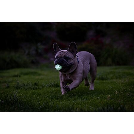 - Fetch day or night: Glows green for early morning or nighttime play, extending games of fetch in low-light conditions. Recharges quickly under any bright light source, no batteries or cords needed. Made with safe photoluminescent materials.