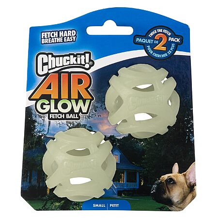 Amazon.com has Chuckit! Air Glow Fetch Ball Dog Toy, Small (2 Inch) Pack of 2, for Breeds 0-20 lbs on sale for $7.57.