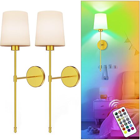 Amazon.com has 10000mAh Battery Operated Wall Sconces Set of Two, Wireless Sconces Set of 2 Wall Light with RGB Rechargeable Magnetic Bulb, Sconces Wall Decor Set of 2 for Living Room Bedroom, Gold on sale for $17.99. Shipping is free with Prime or on $35+