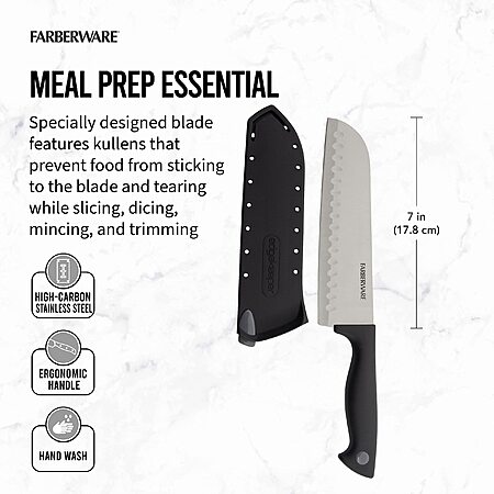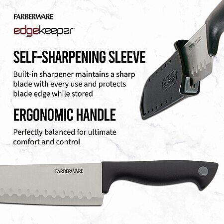 Amazon.com has Farberware Edgekeeper 7-Inch Santoku Knife with Self-Sharpening Blade Cover, High Carbon-Stainless Steel Kitchen Knife with Ergonomic Handle, Razor-Sharp Knife, Black on sale for $7.75.