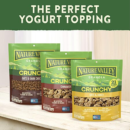 Amazon [amazon.com] has Nature Valley Oats & Honey Big & Crunchy Granola Breakfast Cereal, 16 oz on sale for $3.99 - 25% off when you 'clip' the coupon on product page [amazon.com] - 5% off when you checkout via Subscribe & Save = $2.79. Shipping is free w/ Prime or on orders $35+.
